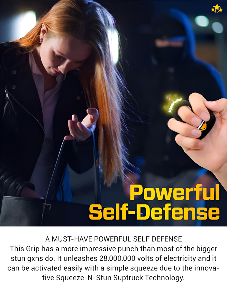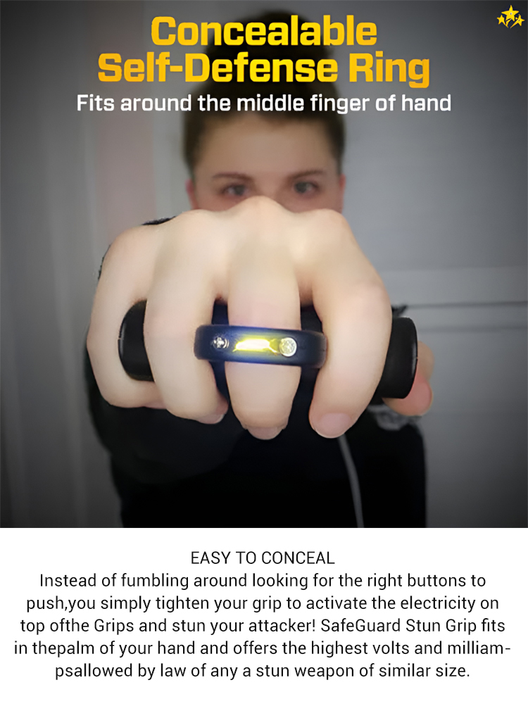 A research team has optimized trigger-activated self-defense technology! Wearing it on your middle finger is unobtrusive, yet a single grip triggers a 25 million volt shock, deterring attackers with a 30-day battery life.