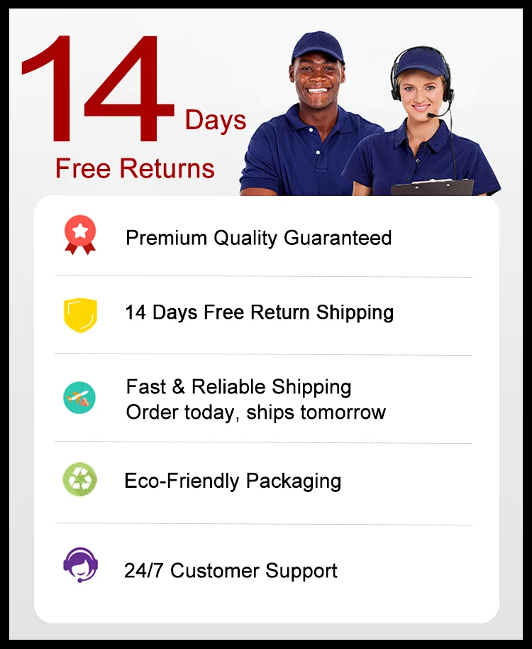 Quality assurance, 14-day returns and exchanges, worry-free returns and exchanges