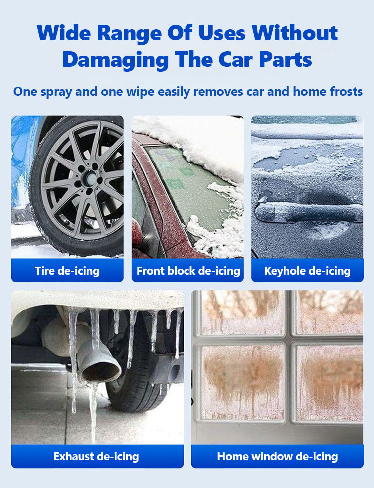 Hot-selling in extremely cold regions 🔥 Free of any harsh chemicals, safely removes ice and snow from car surfaces. Instant effect with just one spray, effortless, and prevents secondary icing.