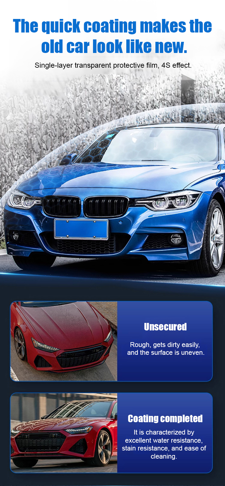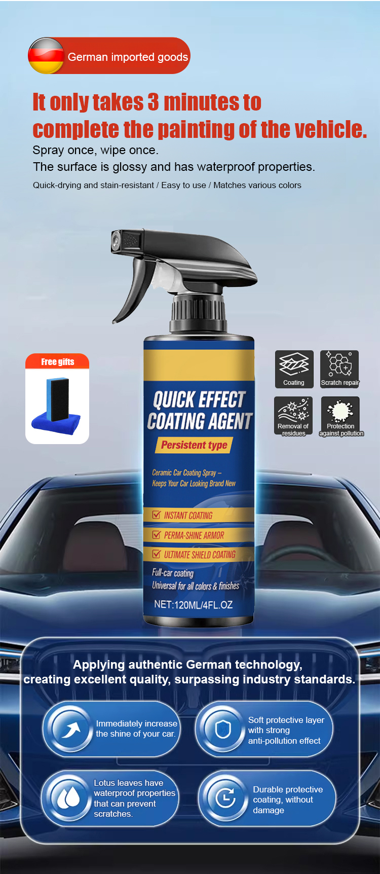30-Day Free Trial + 100% Money-Back if ineffective! 💸 Imported nano coating with stain & acid-alkali resistance 🛡️, fits ALL car makes & models 🚗💨. 5-Year no car wash needed ✨—just spray & wipe (2 simple steps) 🧴🧹, no professional installation required! Easy daily maintenance, 180 days of long-lasting shine ✨