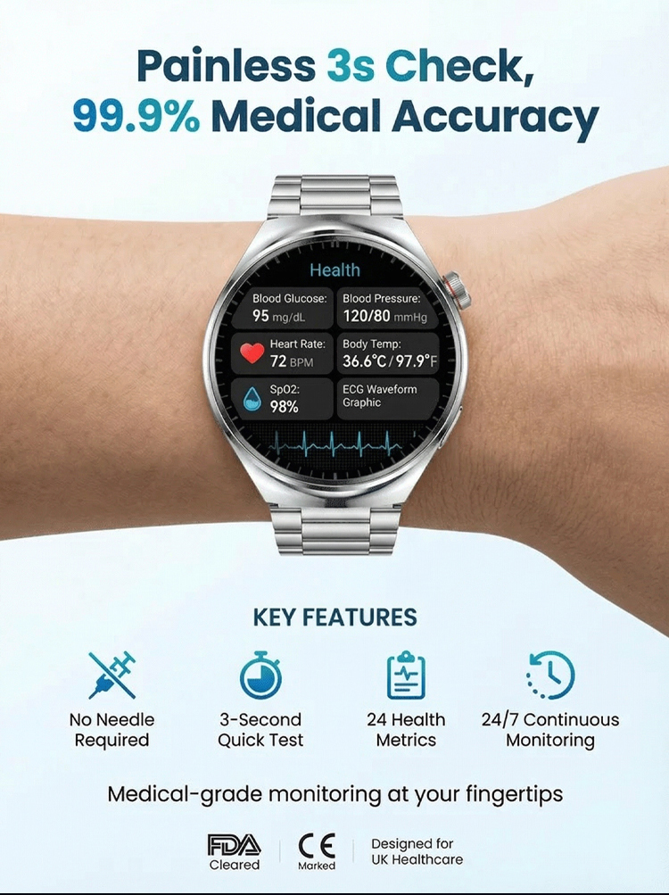 🌍 US-German Co-Engineered + Top University Tech! Doctors’ #1 Pick Smart Watch – 3s Painless Blood Glucose Monitoring!